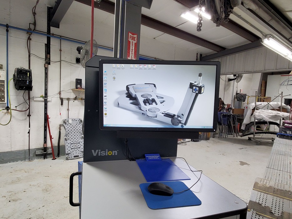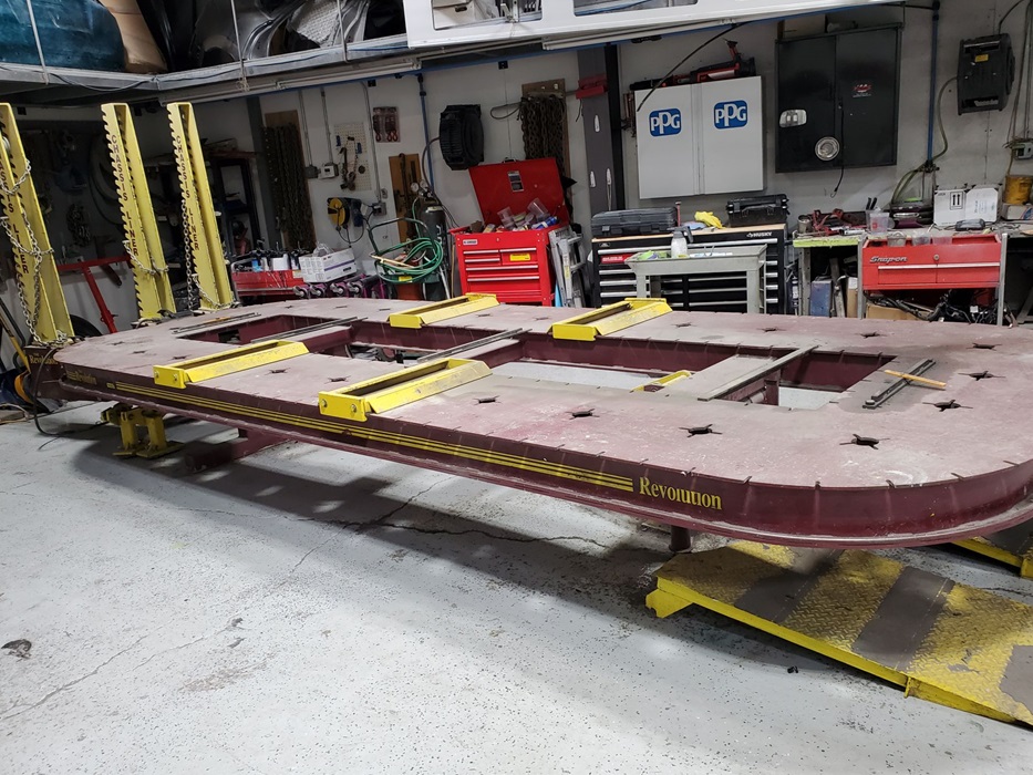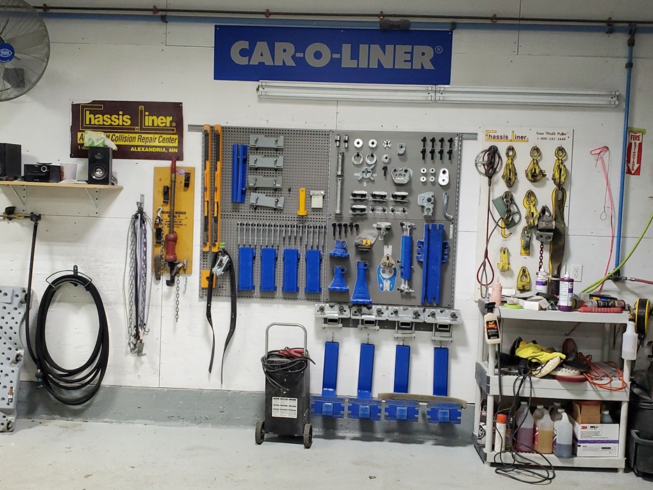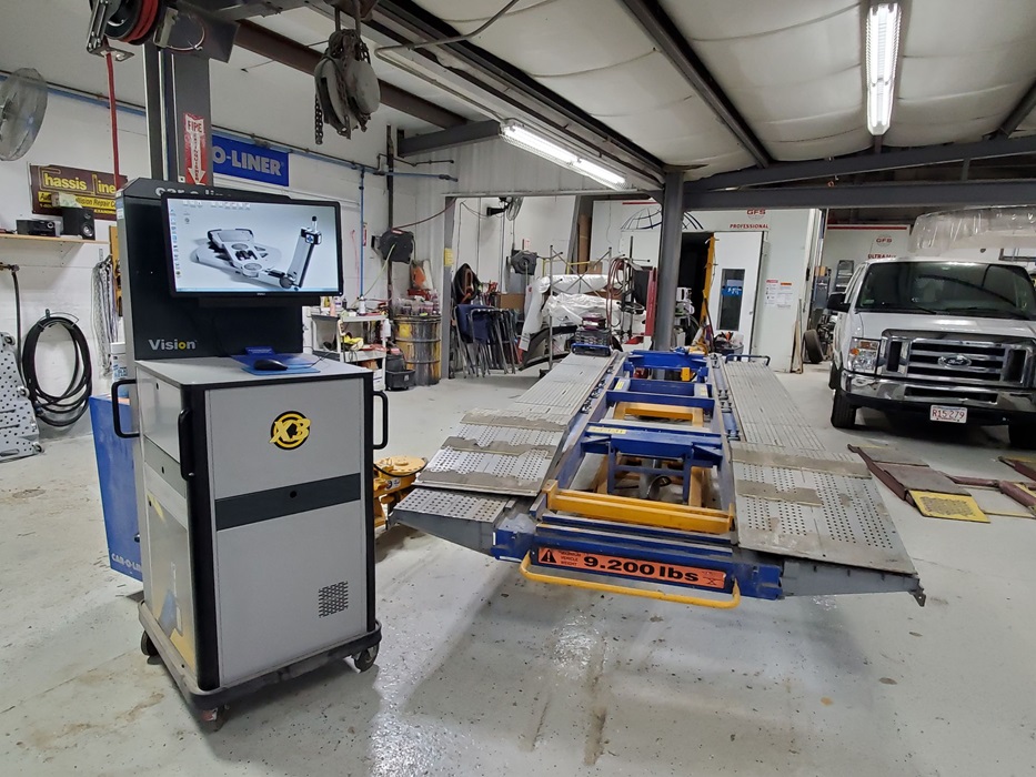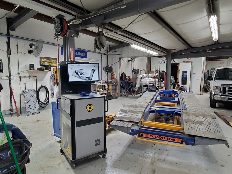 We have state of the art frame machine, Car-o-Liner all computerized measuring system that allows a complete print out of your damage to your vehicles frame/unibody, Chassis-Liner Heavy Duty Dual Wheel Truck Frame machine.